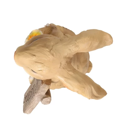 RABBIT DESIGN: This garden statue features an adorable rabbit design, giving your outdoor space a stunning accent. The rabbit is carrying a lovely flower in one paw and a welcome sign in the other for a touch of whimsical charm and eye-catching looks.