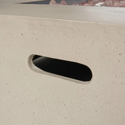 Take in the view of warm, flickering flames against the night sky. With 50,000 BTU and clean, straight lines built from smooth lightweight concrete, our propane gas fire pit not only offers an incredible upgrade in style but is also perfect for parties due to its easy seating arrangement. From intimate conversations around a cozy fire to stargazing on cool summer nights, this square fire pit will have no trouble gathering everyone together for hours of quality time. Please note that tank holder is NOT included.