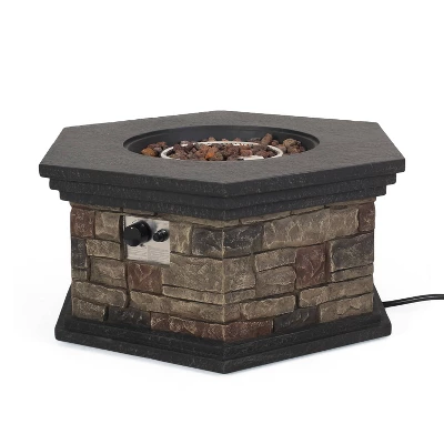 Keep your evening festivities going with the perfect centerpiece. With 40,000 BTU and a gorgeous faux stone aesthetic built from lightweight concrete, our propane gas fire pit not only offers an incredible upgrade in style but is also perfect for parties due to its easy seating arrangement. From intimate conversations around a cozy fire to stargazing on cool summer nights, our octagonal fire pit will have no trouble gathering everyone together for hours of quality time. Please note that tank holder is NOT included.