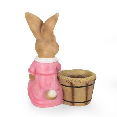 Do you need a gardening companion? From its playful rabbit design to its cast stone structure, our decorative planter will instantly enhance your patio or backyard space with style. This accessory offers a durable construction to ensure that your plant has a stable home to grow. Featuring an adorable rabbit in a pink dress sitting next to a basket, this planter offers a lighthearted look to your garden or porch. Including a drainage hole, this planter is the perfect accessory for your green thumb.