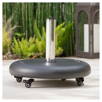Sit outdoors comfortably in the shade with the help of this outdoor Christopher Knight Home Hayward Umbrella Base. Safely secure your umbrella below your patio table or use it as a stand alone piece while decoratively using a stable support. Featuring a neutral finish that will blend into your existing outdoor decor, you will happily lounge in the cool shade flawlessly for hours. This Christopher Knight Home Hayward 88lbs Round Umbrella Base with Wheels you will be able to move your umbrella around so you will always be in the shade.
