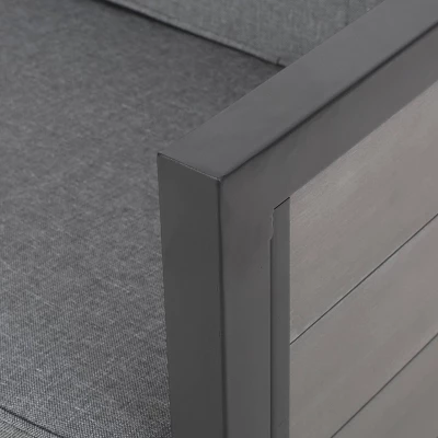 Create a beautiful cozy corner of relaxation in your backyard space with a chat set of outstanding design. This Christopher Knight Home Jax 2pc Faux Wood Loveseat Set is created from a wood composite that provides incredible weather-resistance that requires minimal maintenance, giving you less hassle and more time to relax. This polished modern design incorporates metal trim for an industrial influence to give your outdoor space a sleek look. Finished with plush water-resistant cushions for maximum comfort, this Christopher Knight Home Jax 2pc Faux Wood Loveseat Set is this the ideal addition for any summer experience.