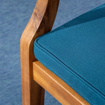 Eat in the great outdoors of your backyard with this dining set. With enough seating for six people, this dining set is perfect for the hot summer nights when the last thing you want to do is be stuffed inside your home. Made with acacia wood, this dining set is sure to last and the cushions on the chairs will have you enjoying the time with your family and friends in comfort. Through some steaks on the BBQ and eat outdoors with stars.