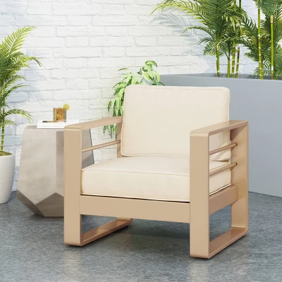 Bring a classic charm to your outdoor lounge space that also brings a modern look to your decor. From fun-filled summer parties to relaxing afternoons with friends, our club chair offers comfort and style for your outdoor space. Featuring a full aluminum frame with water-resistant cushions, this chair is as functional as it is comfortable. With a lightweight frame, this chair is easy to move around and accommodate any setup. This chair is sure to match any decor you currently have, blending seamlessly with your existing furniture.
