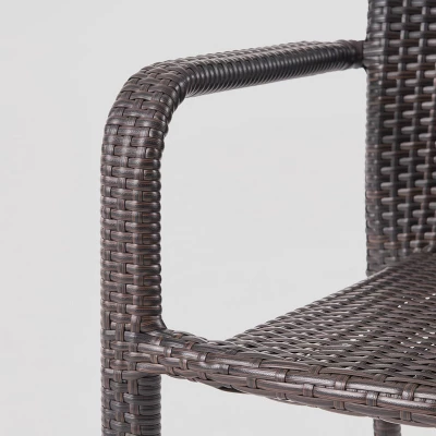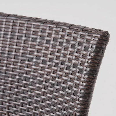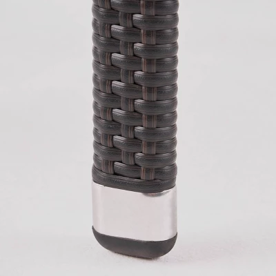 This clean and simple dining set combines the functionality of wood and aluminum with the comfort of wicker. Complete with a table, and 6 wicker dining chairs, this set offers comfortable seating in the great outdoors. Sure to complement any patio décor, this dining set offers you a stylish wooden design with the functionality of an iron framework and comfortable wicker chairs, guaranteed to give you a weather resistant set that will last your for years to come.