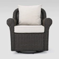 Venti 5pc Wicker Swivel Club Chairs And Fire Pit – Dark Brown/Beige – Christopher Knight Home