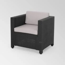 Waverly 4pc All Weather Faux Wicker Patio Chat Set – Dark Gray/Gray – Christopher Knight Home
