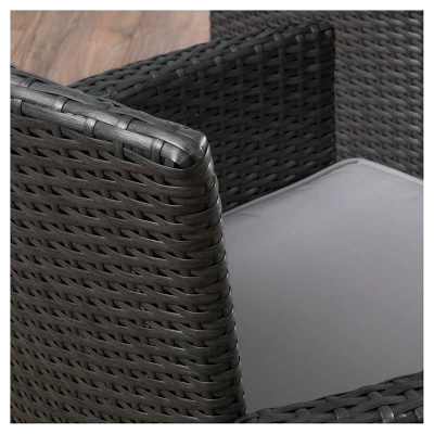 Christopher Knight Home has created the Ponza Wicker and Light Weight Concrete Dining Set for your patio or other outdoor space. Light weight concrete is a strong metal that keeps it lasting, while looking and feeling like real wood and stone. However, it will not require the upkeep necessary with those other materials. The clever pairing of this rustic metal and wicker creates a lovely dining area. All materials are mold-, fungus-, water- and fire-resistant to keep the pieces lasting.