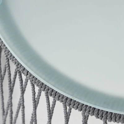 The perfect boho accent to any patio collection, this Christopher Knight Home Southport Steel and Rope Side Table is a unique combination of naturally-textured rope and a rugged iron frame. The natural texture of the rope siding contrasts boldly with this piece’s sleek tempered glass top. This versatile selection can serve as a rustic endcap for your favorite outdoor sofa or as a shared place to chat over hot coffee. Lighten up your current set-up with this chic and boho accent.