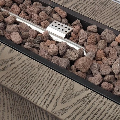 DIMENSIONS: Choose an accessory that is the perfect size for you and your furniture. This fire pit is 48.00” W x 15.00” D x 15.50” H and the tank holder is 15.25” W x 15.25” D x 19.75” H. You will love how much your space can transform with the simple addition of this charming fire pit.
