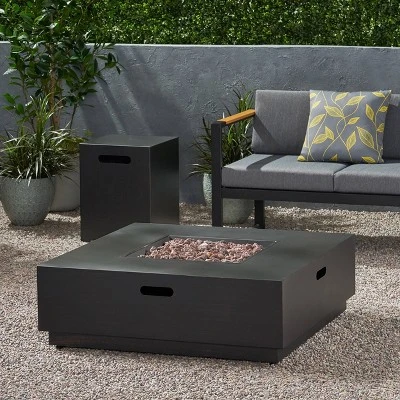 Fashion your outdoor space with a stunning modern centerpiece that will transform the way you experience your summer evenings. With a square structure of sleek, powder-coated iron, this piece not only offers an incredible upgrade in style but is also perfect for parties due to its easy seating arrangement and matching tank holder. From intimate conversations around a cozy fire to stargazing on cool summer nights, our wonderful fire pit will have no trouble gathering everyone together for hours of quality time.